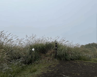 石割山の山頂はガスに包まれ、まるで雲の中にいるよう!!!